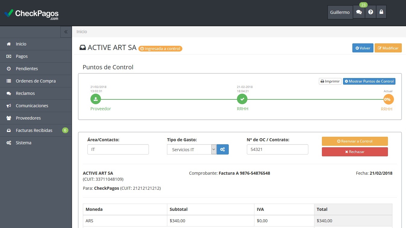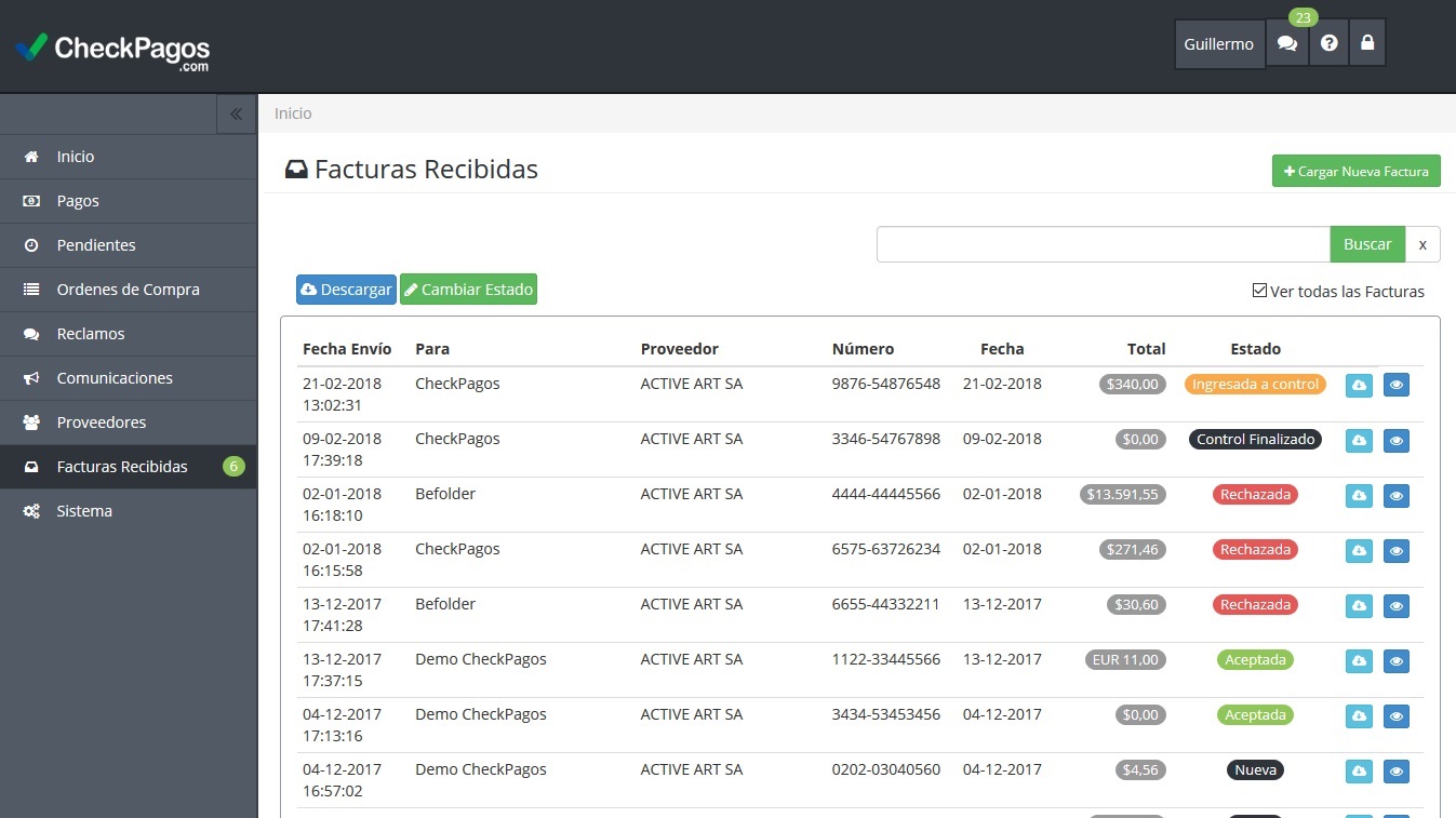 Seguimiento del estado de cada factura durante el proceso de aprobación hasta su efectivo pago.